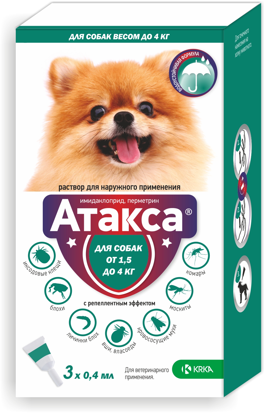 Ataksa, 100 mq/500 mq, 4-10 kq itlərdə xarici istifadə üçün məhlul 0,1 ml