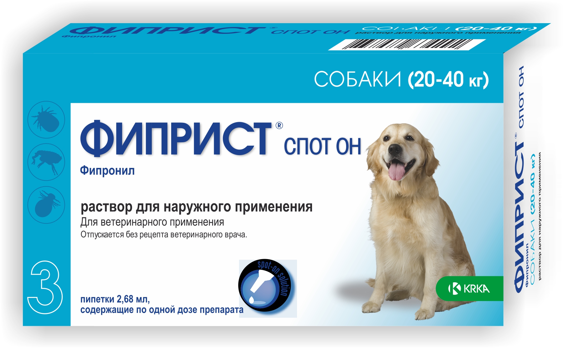 Fiprist Spot on, 100 mq/ml, xarici istifadə üçün məhlul 4,02 ml itlər üçün 40-60 kq
