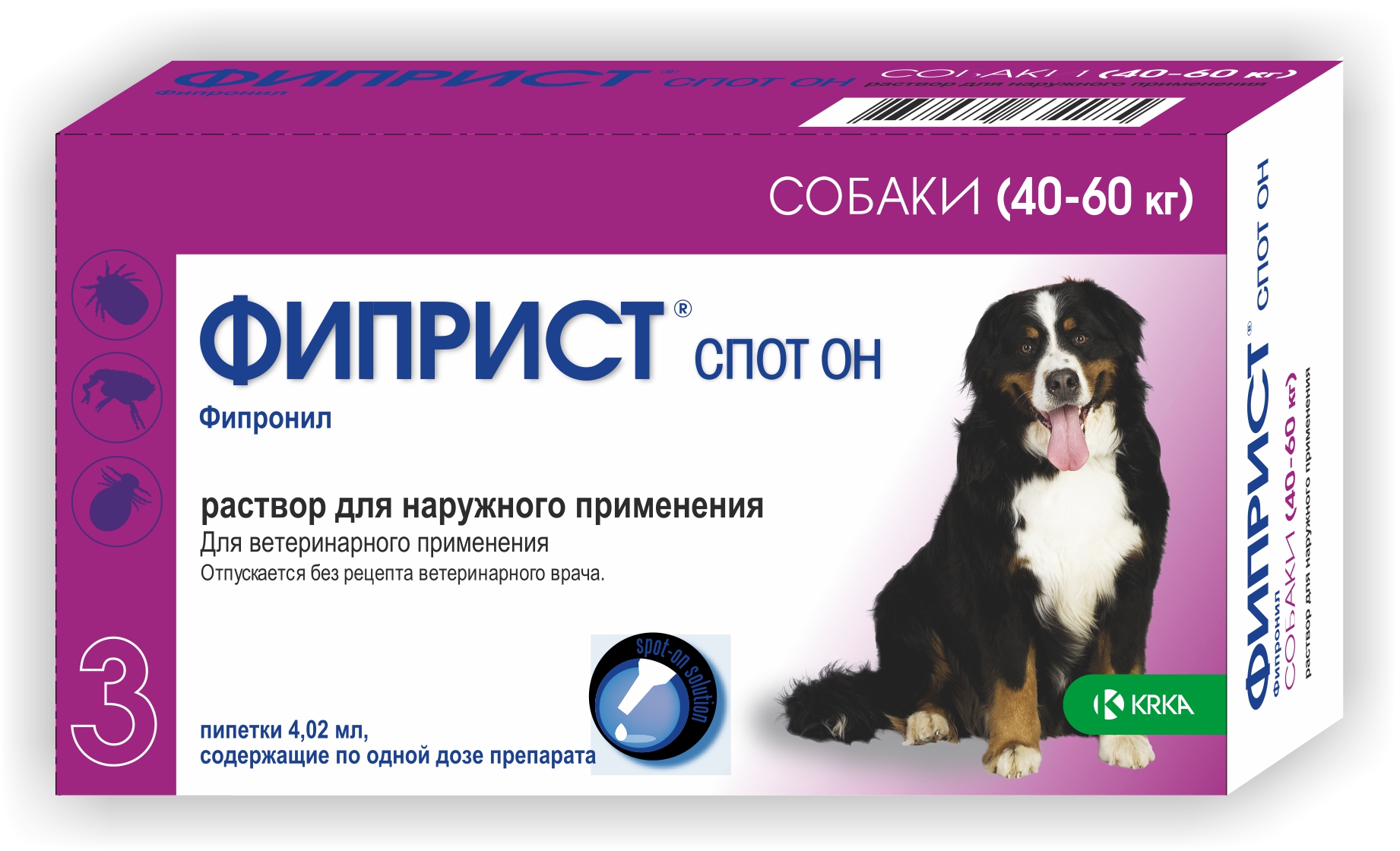 Fiprist Spot on, 100 mq/ml, xarici istifadə üçün məhlul 2,68 ml itlər üçün 20-40 kq