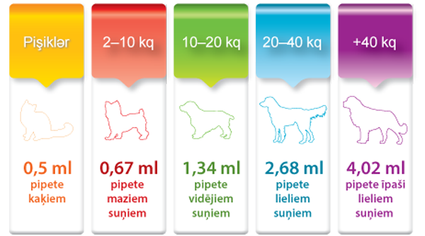 | Hansı parazitlərdən qoruyur? | Birə, gənə, bit, adi bağırsaq qurdları (yumru qurdlar, ankilostomalar) və ürək qurdları |